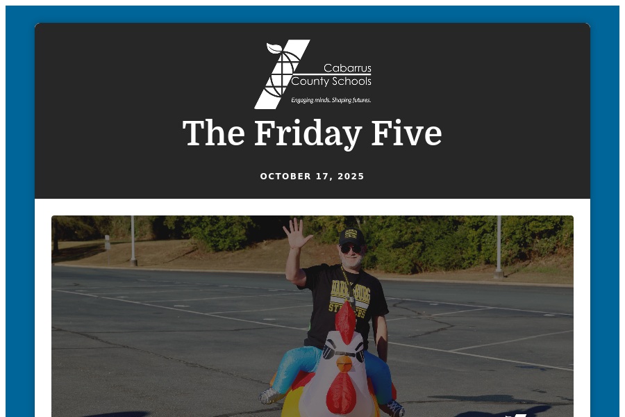 The Friday Five October 10, 2025 Happy Friday, Cabarrus County Schools families! It's been a great week! We hope you enjoy the long weekend, and we look forward . . .